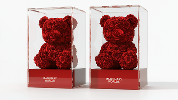 Once the Rose Bear is adorned with forever roses and secured in its luxury acrylic case, final refinements ensure perfect alignment, crystal-clear polishing, and precise gold-foil branding. The result is a stunning floral sculpture, designed for timeless display and luxury gifting.